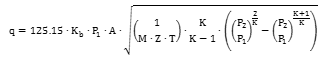 q 額定泄放量 Kb 泄放系數(shù) P1 大泄放壓力 A 流道面積 M 摩爾質(zhì)量 Z 壓縮系數(shù) T 泄放溫度 K 絕熱指數(shù) P2 背壓 d 流道直徑