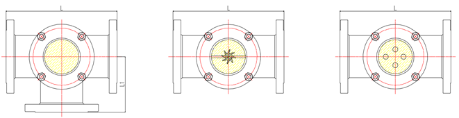2、三通型,一般用于兩條或以上的管線交叉口,可以通過視窗觀測(cè)介質(zhì)的動(dòng)向。