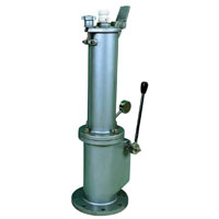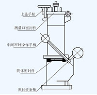 產(chǎn)品安裝在儲罐頂上,平時均能絕對密封,需要測量化工品時,先旋開、拔出測量口密封件,將窄口式測量組件放在上蓋中間擰緊,再按下中間密封操作手柄,就能打開筒體密封件,此時將測量尺從上方窄口縫中伸入,即可測量液位的標高。操作完成后先拉回手柄,取出測量組件,再放入密封件擰緊。如對油品進行測量、取樣時,拉下中間操作手柄,打開上蓋即可。